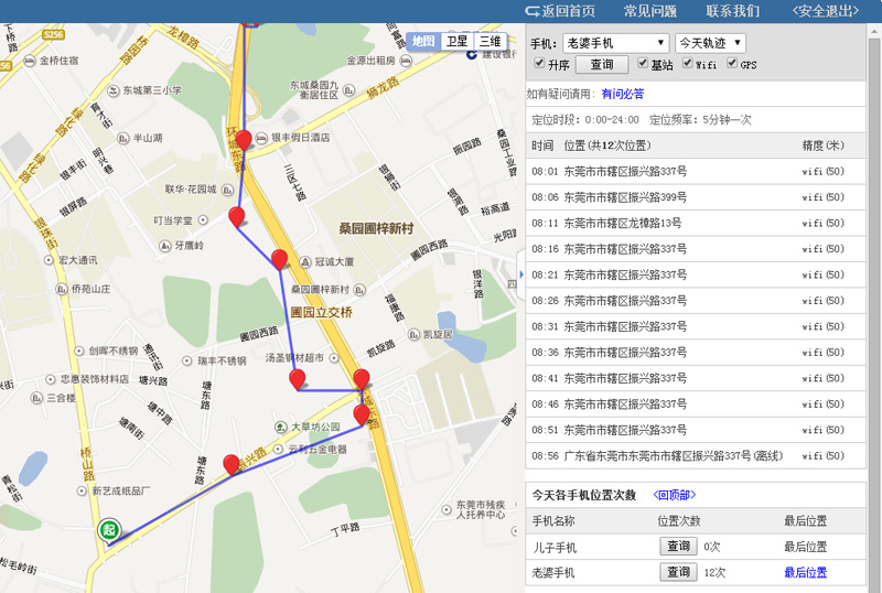 绑定成功后,使用电脑或手机登录158定位网158dw.com,就可以通过页面右侧栏目查找目标手机历史轨迹,如下图所示。
